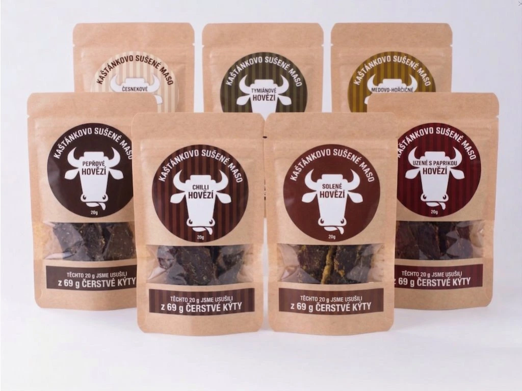 Naše hovězí maso krájíme na plátky, pomalu sušíme na tu správnou míru a celý proces od krájení až po balení je ruční prací. Při výrobě navíc nepoužíváme žádnou chemii ani umělé konzervanty.