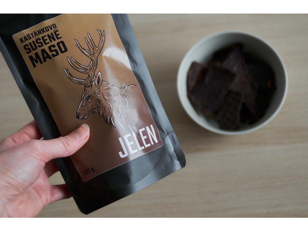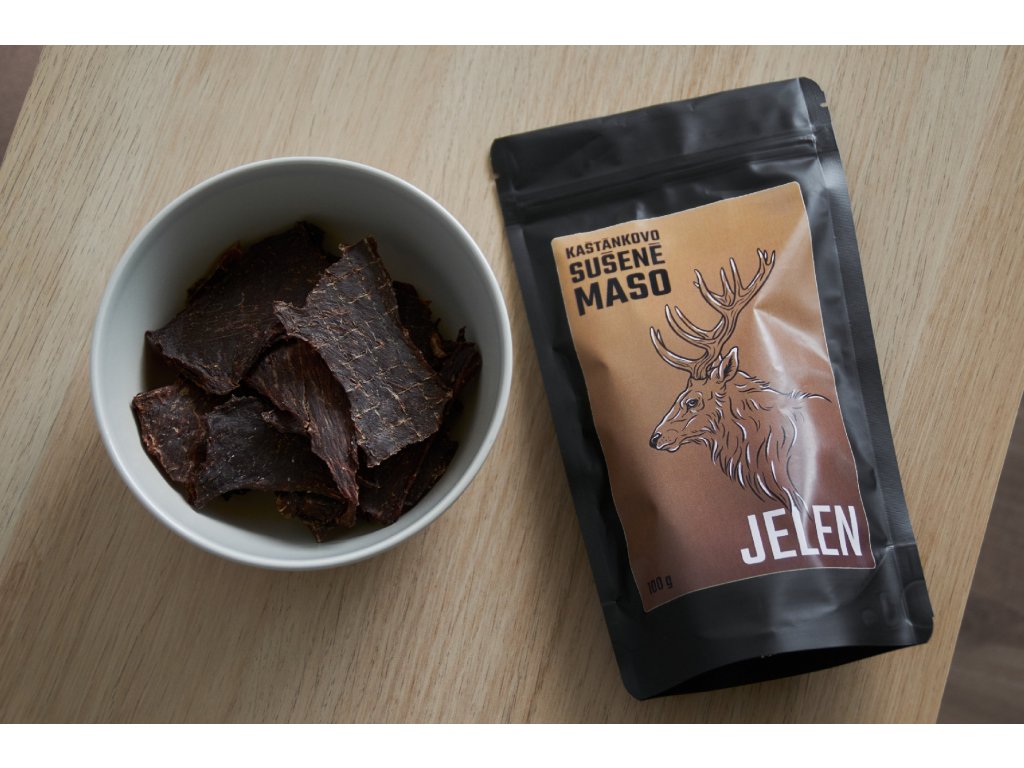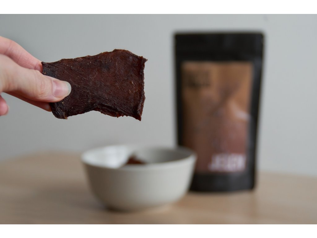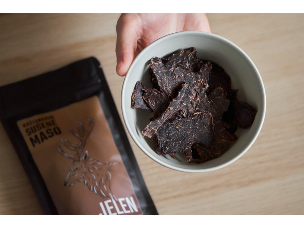 Jelení sušené maso s červeným vínem, rozmarýnem a jalovcem.