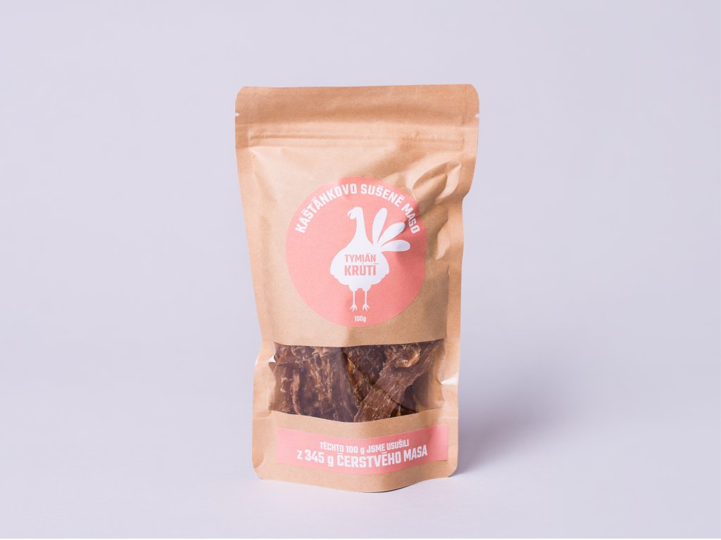 Složení: krůtí prsa 97,5%, jedlá sůl 1,5%, tymián 1%.