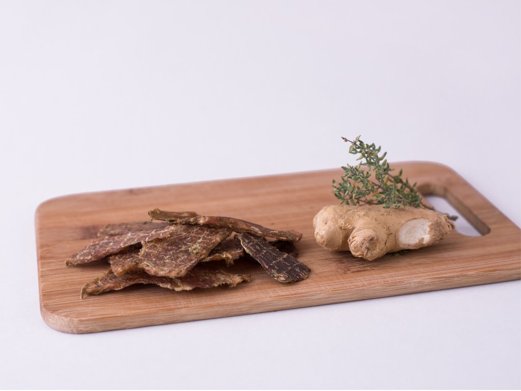 Vepřové sušené maso s jemným nádechem tymiánu a zázvoru.
